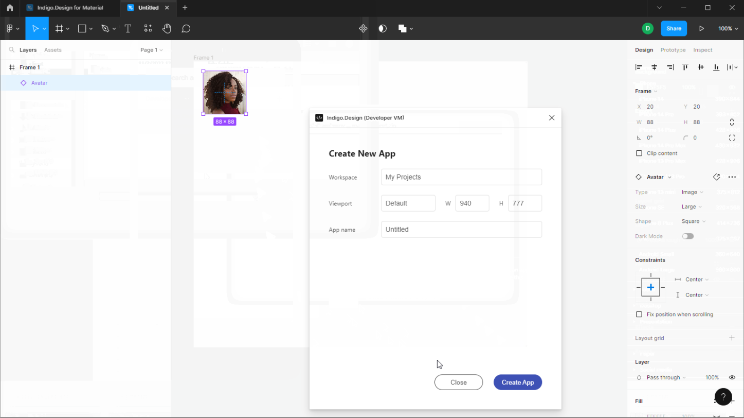 App Builder を使用して、ワンク リックでデザインからコードを作成できます。まず、Figma または Sketch 用の Indigo.Design システム を使用してデザインを作成します。その後、Figma プラグインを使用して、App Builder でアプリとして公開できます。Sketch の場合、新しいアプリを作成するときに、Sketch ファイルを App Builder に直接インポートできます。インポートすると、UI キット コンポーネントがツールボックスで使用可能なコンポーネントにマップされます。これにより、データと変数を使用してアプリを拡張し、動的なアプリ エクスペリエンスを作成できます。