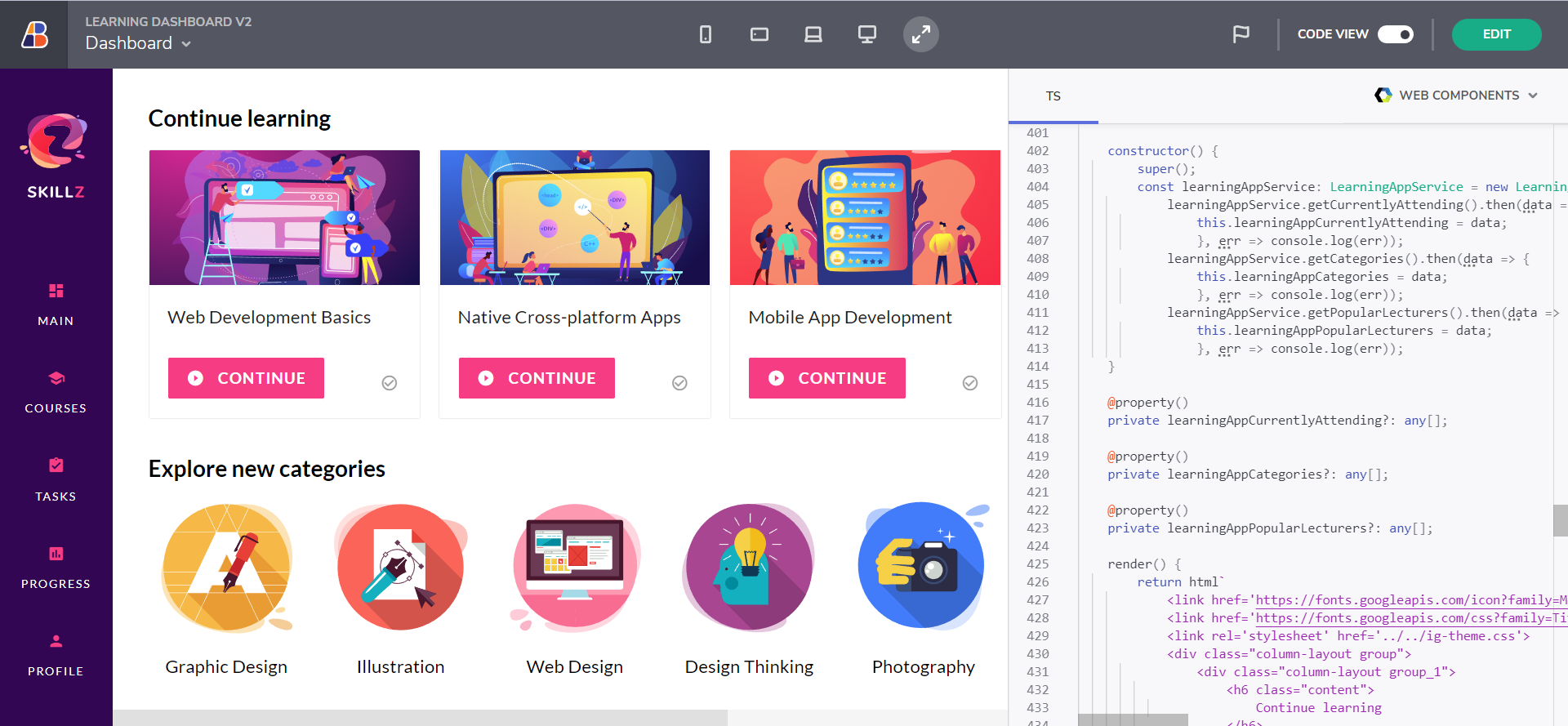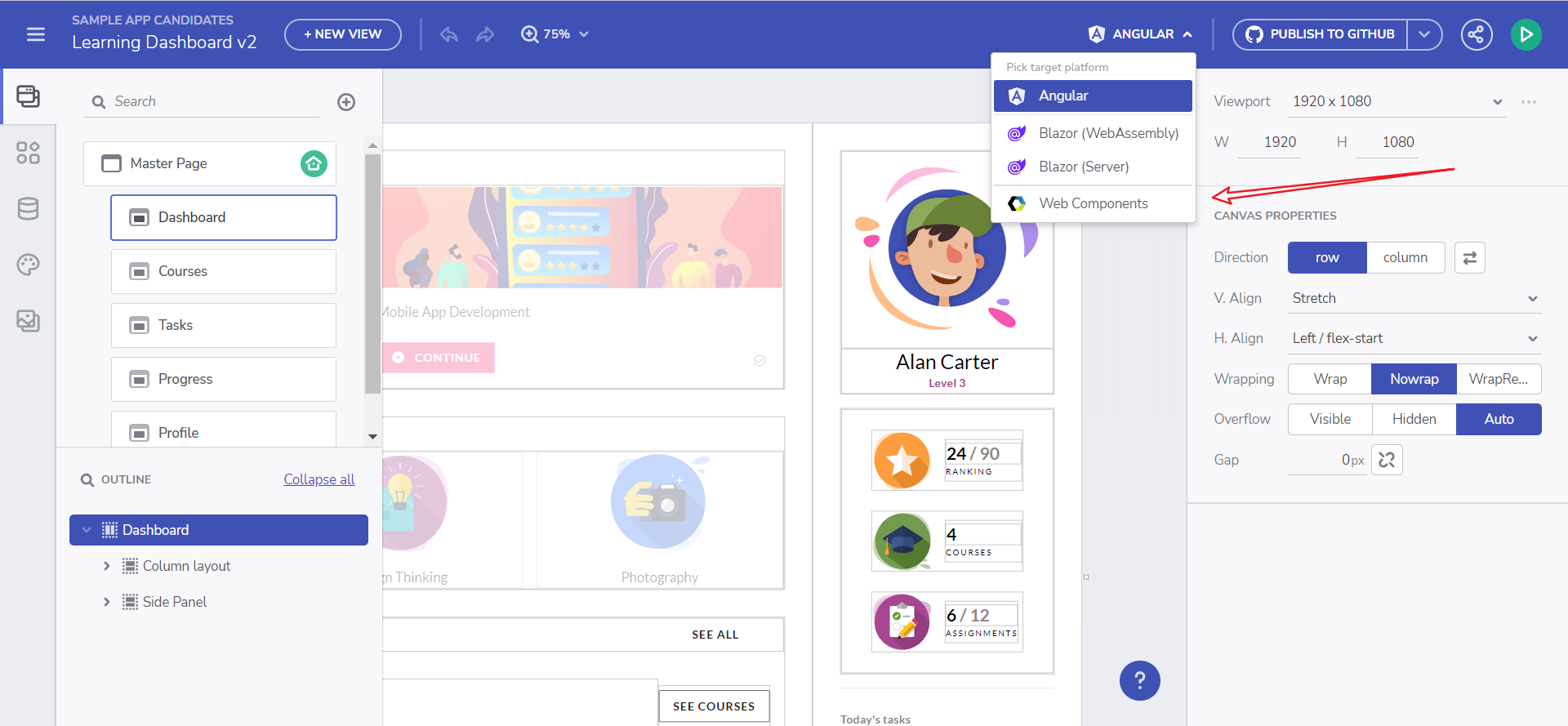 以下は、App Builder を使ってドラッグアンドドロップでデザインからコードを作成する 4 つの簡単な手順です。